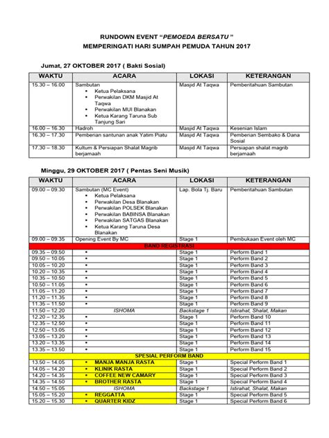 Hey guys! Let’s dive into planning an awesome 17th August Independence Day celebration! It’s that time of year again when Indonesia commemorates its independence, and what better way to celebrate than with exciting competitions and events? Whether you’re organizing events for your neighborhood, school, or workplace, having a well-structured rundown is essential . This ensures everything runs smoothly, keeps participants engaged, and makes the entire celebration memorable. A rundown acara lomba 17 Agustus in Word format provides a flexible and easily customizable template to help you manage your event efficiently. This guide will walk you through creating a detailed and engaging rundown, complete with tips and tricks to make your event a smashing success.