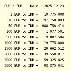 Current Exchange Rate: 90 Million IDR to EUR