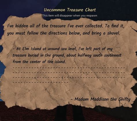 Elm Island is a fantastic location for treasure hunting due to its diverse terrain and numerous hidden spots. When you arrive on Elm Island with a treasure chart in hand, take some time to familiarize yourself with the island’s layout . Note the major landmarks like the large Elm tree that gives the island its name, any distinctive rock formations, and the general coastline. Many treasure charts will depict these features, helping you narrow down your search. Elm Island is particularly rich in natural landmarks, making it easier to align the treasure chart’s depiction with the real-world environment. Pay close attention to the small details in the treasure chart’s drawing. Sometimes, the key to finding the treasure lies in a minor feature like a specific type of bush, a broken fence, or a small pile of rocks. Don’t overlook anything! Another helpful tip is to use the sun’s position as a reference point. The treasure chart might show the sun in a particular position relative to the landmark, giving you an idea of the direction you need to be facing. Also, be aware of the potential dangers lurking on Elm Island. Wild animals and hostile NPCs can make your treasure hunt more challenging. Always be prepared for combat and consider bringing a friend along for extra protection. Elm Island offers a balanced mix of challenge and reward, making it an ideal destination for both novice and experienced treasure hunters. The island’s unique features and varied landscapes provide ample opportunities to discover hidden riches. Embrace the spirit of adventure, keep your eyes peeled, and you’ll surely uncover some amazing treasures on Elm Island!