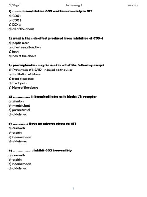 Let’s dive deeper into what autacoids exactly are . The term “autacoid” is derived from the Greek words “autos” (self) and “acos” (remedy or drug), reflecting their nature as endogenous substances that act as local regulators. They are produced by a wide variety of cells throughout the body, often in response to specific stimuli, such as tissue injury, inflammation, or allergic reactions. Unlike hormones, autacoids are not stored in specialized glands but are synthesized and released on demand. This immediate release allows for rapid and localized responses to changing conditions within the body. Think of them as the body’s first responders, quickly addressing local issues before they escalate into systemic problems. Several classes of substances fall under the umbrella of autacoids, each with its own unique properties and functions. These include: Histamine, Serotonin (5-HT), Eicosanoids (prostaglandins, thromboxanes, leukotrienes), Platelet-Activating Factor (PAF), Cytokines, Angiotensin, and Bradykinin. Each of these autacoids plays a vital role in maintaining homeostasis and responding to various physiological and pathological stimuli. For example, histamine is well-known for its role in allergic reactions, while eicosanoids are involved in inflammation and pain. Understanding the specific functions of each autacoid is crucial for developing targeted therapies for various diseases. Furthermore, the interactions between different autacoids can be complex and influence their overall effects on the body. Therefore, a comprehensive understanding of autacoids requires considering their individual properties and their interactions within the local microenvironment. Remember, autacoids are the unsung heroes working tirelessly to keep our bodies in balance at the local level!