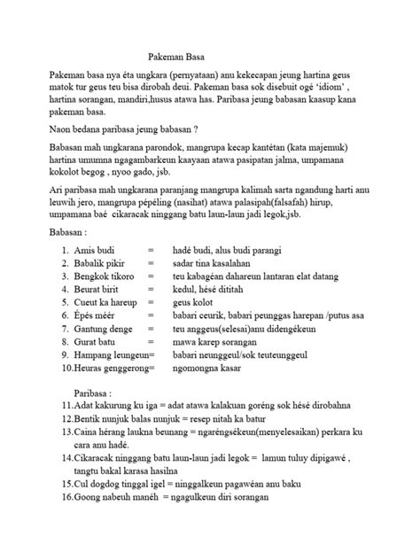 Hey guys! Today, we’re diving into the colorful world of Sundanese expressions known as babasan . If you’re trying to learn Sundanese or just curious about the culture, understanding babasan is super important. These aren’t just words; they’re little nuggets of wisdom and cultural insight packed into short, catchy phrases. So, let’s get started and explore what babasan really means and how you can use them!