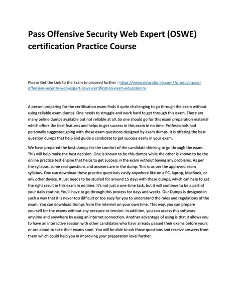 For individuals seeking to advance their careers in cybersecurity, the OSWE certification is a significant asset. Employers highly value professionals with proven expertise in web application security. The OSWE certification demonstrates that you possess the technical skills and practical knowledge necessary to excel in roles such as security analyst, penetration tester, or security engineer. Furthermore, holding the OSWE certification can lead to increased job opportunities, higher salaries, and greater career advancement potential. It opens doors to positions that require specialized knowledge in code auditing and vulnerability assessment. Many companies specifically seek out candidates with OSWE certification to fill critical security roles. This demonstrates the industry’s recognition of the certification’s value. Additionally, the OSWE certification enhances your professional reputation , making you a more attractive candidate in a competitive job market. In summary, the OSWE certification significantly boosts your career prospects by validating your expertise and increasing your marketability.