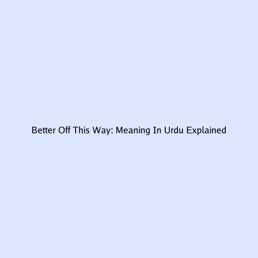 Hey guys! Ever heard the phrase “ better off this way ” and wondered what it means, especially in Urdu? Well, you’re in the right place! We’re going to break down this common English idiom and explore how it translates and resonates in Urdu. Understanding the nuances of such phrases can really help you connect better with people and the language itself. So, let’s dive in and unravel the meaning of “ better off this way ” in Urdu!