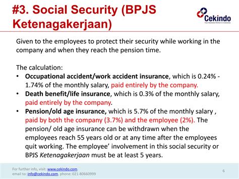 3. Jaminan Hari Tua (JHT) - Old Age Security : This is a savings program where both employees and employers contribute a portion of the salary. The accumulated funds, along with investment earnings, are paid out as a lump sum when the participant reaches retirement age (usually 56 years old), or in certain cases, upon termination of employment. It’s essentially your retirement nest egg, managed by BPJS Ketenagakerjaan.