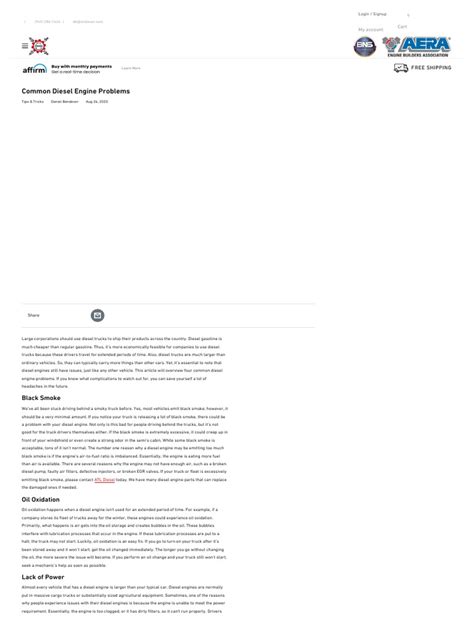 Common Diesel Engine Problems And Solutions