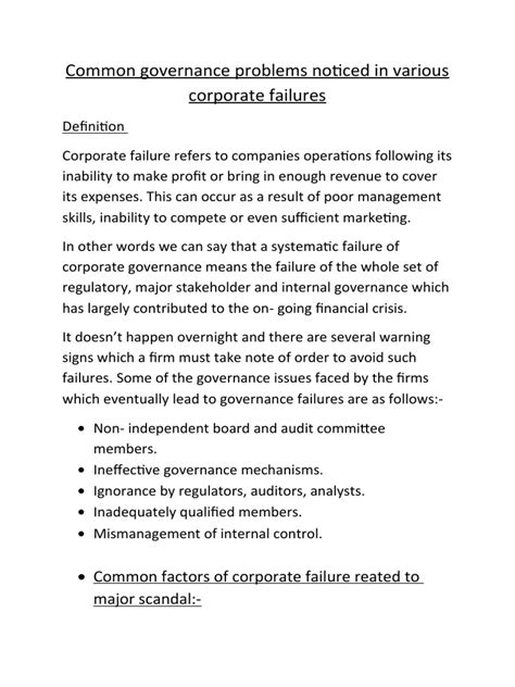 Corporate Governance Failures: Common Pitfalls