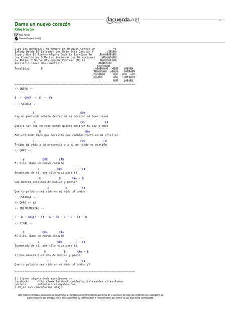 • Bridge: The bridge provides a change of pace and often introduces a new perspective or a deeper level of reflection. In “ Dame Un Nuevo Corazon Acordes ,” the bridge might include a modulation or a different chord progression that builds anticipation for the final chorus.