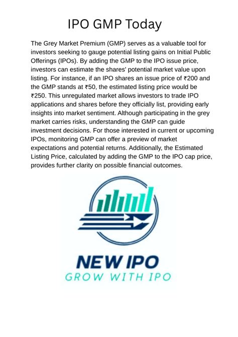Now, let’s talk about GMP , or Grey Market Premium . The grey market is essentially an unofficial market where IPO shares are traded before they are officially listed on the stock exchange. It’s like a sneak peek into what the market sentiment is for a particular IPO. The GMP is the premium that investors are willing to pay over and above the IPO price in this grey market. It gives an indication of the expected listing price of the IPO. For instance, if an IPO is priced at ₹100 per share and the GMP is ₹20, it means that people are willing to buy the share for ₹120 in the grey market. A higher GMP generally indicates stronger investor interest and a potentially successful listing. However, it’s crucial to remember that the GMP is not an official indicator and is subject to a lot of speculation and volatility. It can change rapidly based on market sentiment, news flow, and overall investor confidence. Therefore, while the GMP can provide some insight, it should not be the sole basis for making investment decisions.