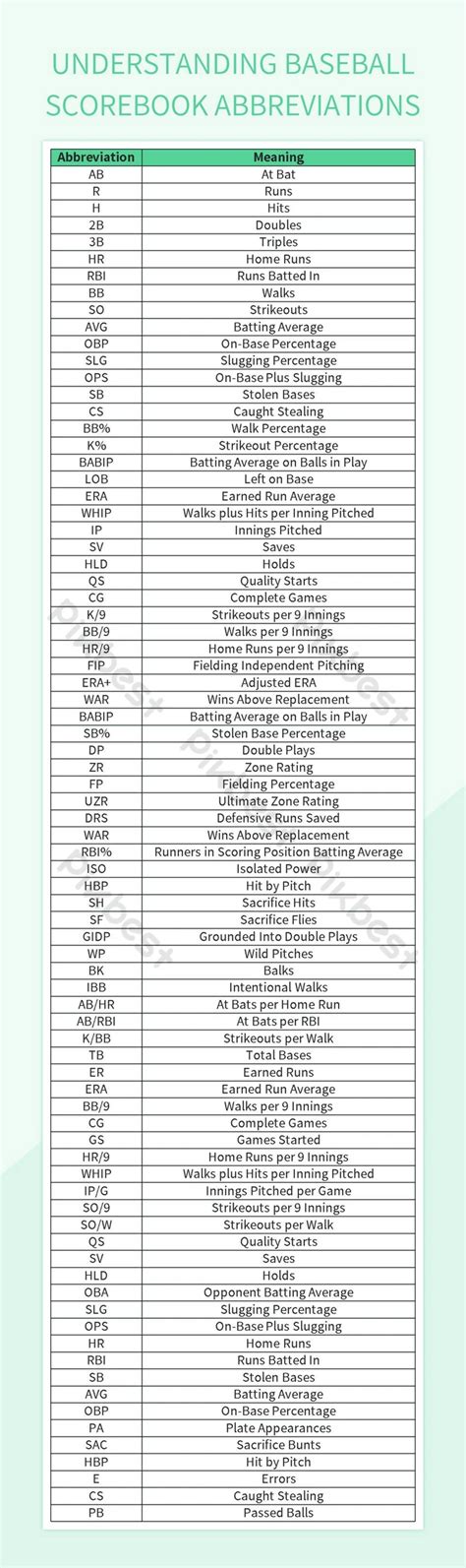 1. Memorize the Basics: Start by learning the standard three-letter abbreviations for all 30 MLB teams. This will give you a solid foundation and make it easier to decipher less common codes.