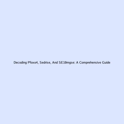 Decoding Pfoxo4, Sedrise, And SE10mgse: A Comprehensive Guide