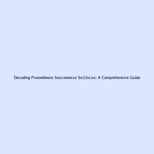 Decoding pseowbtwse sescnewsse se13scse: A Comprehensive Guide