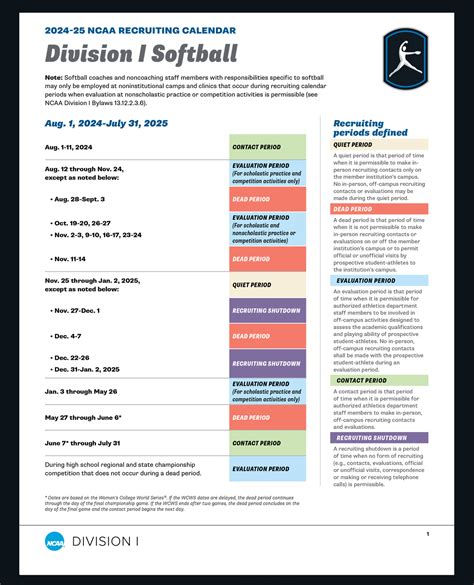 • Avoiding NCAA Violations : Following the calendar ensures that you and the coaches adhere to NCAA rules. Ignoring these rules can lead to serious consequences, including penalties for both the player and the program. Familiarizing yourself with the regulations helps you avoid any missteps that could jeopardize your eligibility or the coach’s ability to recruit you. This is super important to protect your chances of playing college softball.