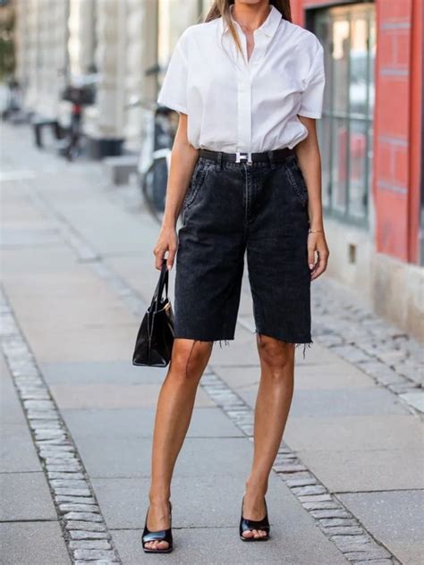 Alright, let’s get into the fun part: how to style your denim Bermuda shorts ! This is where you can really let your personal flair shine. The beauty of these shorts is their inherent versatility, meaning you can create a multitude of looks. For a casual, everyday vibe, you can’t go wrong with a classic combination. Think a simple, well-fitting t-shirt or a relaxed-fit tank top tucked in or half-tucked. Add a pair of clean white sneakers or some stylish espadrilles, and you’ve got an effortlessly cool outfit. Throw on a denim jacket or a light cardigan if there’s a slight chill in the air. This is perfect for weekend outings, farmers’ market trips, or just hanging out with friends. Now, if you want to elevate your look for a slightly dressier occasion, like a casual dinner or a day out exploring a new city, try pairing your denim Bermudas with a stylish blouse. Opt for something with a bit of texture, like a silky camisole, a flowy linen top, or a crisp button-down shirt. You can even go for a more structured blouse to add a touch of sophistication. To complete this elevated look, swap your sneakers for some chic sandals, block heels, or even pointed-toe flats. Accessorize with some delicate jewelry, a stylish belt, and a crossbody bag or a tote. This combination strikes a perfect balance between casual and polished. Don’t be afraid to play with proportions! If you’re wearing looser-fitting Bermudas, balance them out with a more fitted top, or vice versa. For those of you who love a bit of edge, try styling your denim Bermudas with a graphic tee, a leather jacket, and some combat boots for a cool, edgy aesthetic. This works particularly well with darker washes or distressed denim. The key to mastering the denim Bermuda shorts look is confidence and understanding what flatters your body shape. Experiment with different washes – from light, distressed denim for a vintage feel to dark, clean washes for a more polished look. Cuffed hems can also change the silhouette and give your shorts a more tailored appearance. Remember, accessories are your best friend! A great belt can cinch your waist and add definition, while the right shoes can completely transform the vibe of your outfit. So, go ahead, play around, and find the combinations that make you feel fabulous and fashion-forward .