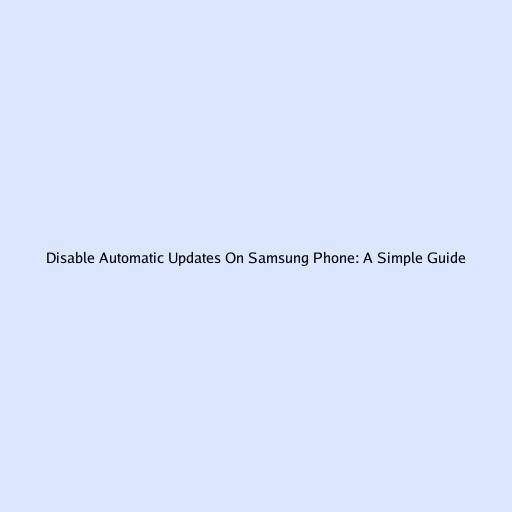 Disable Automatic Updates On Samsung Phone: A Simple Guide