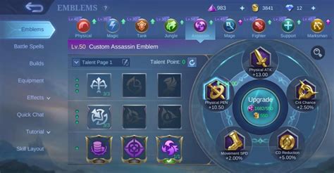 • Custom Assassin Emblem: This is the most common and effective choice. Increase physical attack, penetration, and movement speed.