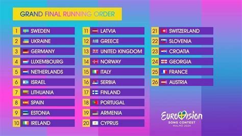 1. Know the Running Order : Familiarize yourself with the final running order to anticipate your favorite performances and understand the strategic flow of the show. Knowing when each country will perform allows you to plan your viewing and voting strategy accordingly.