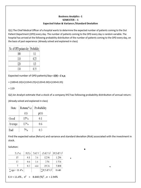 Even though both stocks have the same expected return, Stock A is less risky due to its lower variance and standard deviation. If you’re risk-averse, Stock A might be the better choice. However, if you’re willing to take on more risk for the potential of higher returns, Stock B could be appealing. This example shows how expected value, variance, and standard deviation work together to provide a comprehensive understanding of potential outcomes.