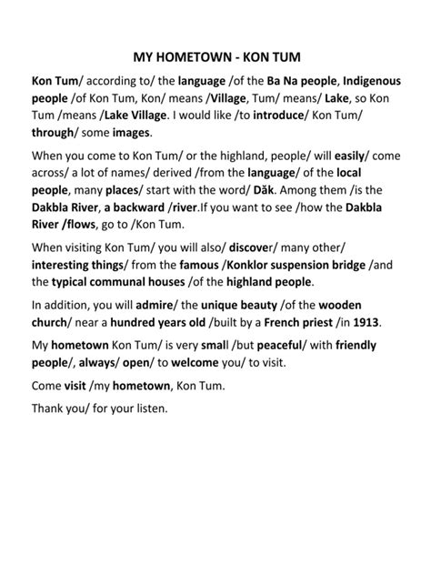 - Show, Don’t Tell: Instead of simply stating facts, use descriptive language and examples to bring your hometown to life.