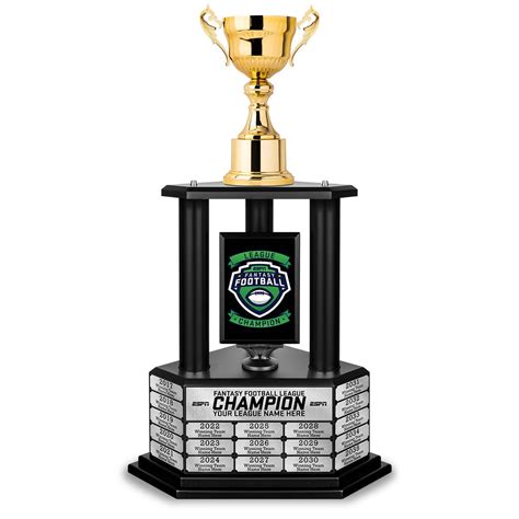 A custom trophy creates a lasting legacy. It’s not just a trophy for one year; it’s a symbol passed down through the ages of your league. The winner’s name is engraved, their team immortalized, and their victory forever etched in fantasy football history. The trophy serves as an annual reminder of past victories and a powerful motivator for future seasons. It builds camaraderie and reinforces the competitive spirit that drives the league. Having a championship trophy adds a layer of professionalism and excitement to your league, making it feel more like a real-life sport and less like a casual hobby.