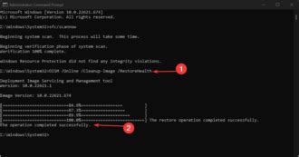 in an elevated Command Prompt to check for and repair corrupted Windows system files. Also, consider running