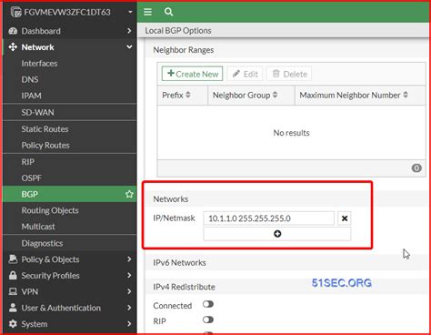These settings establish the BGP peering relationship between the two FortiGate firewalls. The remote AS specifies the autonomous system number of the remote FortiGate. The IP address is the IP address of the remote FortiGate, typically the internal IP address assigned to the tunnel interface. The update source specifies the interface through which BGP updates are sent, which should be the IPsec tunnel interface. Now, let’s configure the BGP networks. We’ll advertise the local subnet to the remote FortiGate, allowing it to learn the routes to your network. Remember to configure the BGP neighbors on both FortiGate firewalls, ensuring that the parameters match on both sides. This is essential for BGP to function correctly. Once the BGP neighbors are configured, we can proceed to configure the BGP networks. So, let’s get started and make your network more dynamic and connected!