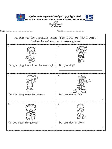 Fun English Quiz For Year 2 Students