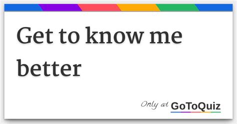 Get To Know Me Better