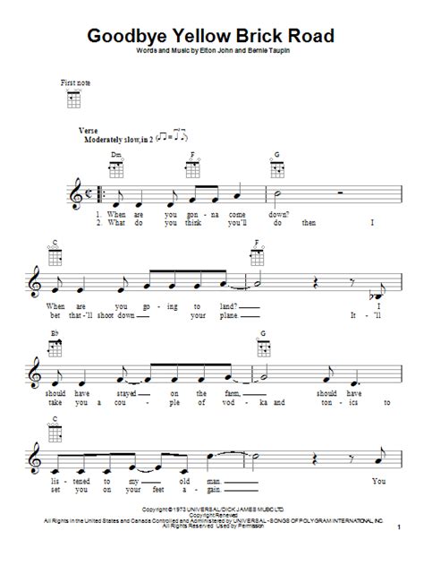 We’ve got the chords, we’ve got the structure, now let’s talk rhythm! A great song isn’t just about the notes; it’s about how you play them, and for “ Goodbye Yellow Brick Road ” on the ukulele, the strumming pattern is key. While the original song has a complex arrangement, we can simplify it for the uke to capture that signature feel. A really effective and common strumming pattern for this type of song is a variation of the Down-Down-Up-Up-Down-Up pattern. Let’s break that down: You’ll want to make four strums per chord. The first strum is a Down strum. The second is another Down strum. The third is an Up strum. The fourth is another Up strum. The fifth is a Down strum, and the sixth is an Up strum. So, it sounds like: Down - Down - Up - Up - Down - Up . Try practicing this pattern slowly on a single chord, like G Major. Feel the rhythm. Once you’re comfortable, start applying it to your chord progressions. For example, play G for four beats using this pattern, then move to D and do the same, then Em, then C. This pattern provides a good balance of down and up strokes, giving your playing a nice forward momentum, much like the original track. Another approach, especially for the verses, could be a simpler Down - Down - Up - Down - Up pattern, or even just Down - Down - Down - Down if you’re really focusing on chord changes. The most important thing is to listen to the song and try to mimic the feel. Does it sound like it’s rushing forward? Does it have a bit of a swing? Experiment! Sometimes, a slightly more syncopated pattern, like Down - Up - Down - Up - Down , can also work wonders. The key is to keep it steady . A metronome is your best friend here, especially when you’re first learning. Practice the pattern until it becomes second nature, until your strumming hand knows what to do without you even thinking about it. This frees up your mind to focus on the chord transitions and the overall feel of the song. For the chorus, you might want to strum a bit more forcefully or slightly faster to give it more energy. Don’t be afraid to vary the intensity of your strumming to match the dynamics of the song. This will make your performance much more engaging and professional-sounding. So, experiment with different patterns, but always come back to that core rhythm that feels right for “Goodbye Yellow Brick Road.” Your ukulele will thank you for it, and your audience will too!
