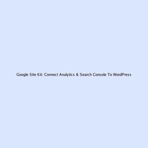 Google Site Kit: Connect Analytics & Search Console To WordPress
