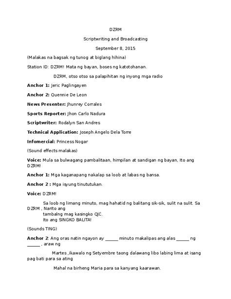 Halimbawang Script Ng News Anchor Sa Tagalog