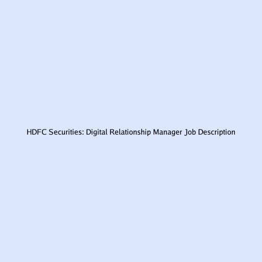 HDFC Securities: Digital Relationship Manager Job Description