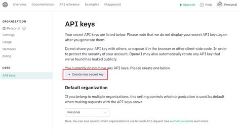 4. Generate Your API Key: Within the API section, you should see an option to “Create new secret key” or something similar. Click on that.