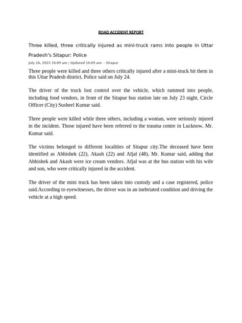 How To Write A Road Accident Newspaper Report