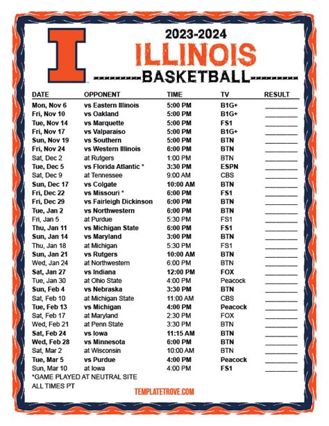 So, you’re hyped for the season and want to know how to stay on top of the Illini basketball game schedule ? Don’t worry, guys, it’s easier than ever to keep up with all the action. First off, the official University of Illinois Athletics website (fightingillini.com) is your go-to source. They’ll have the most up-to-date schedule, ticket information, game times, and any changes that might pop up. You can usually find a printable schedule there too, perfect for sticking on your fridge or sharing with your buddies. Secondly, social media is your best friend. Follow the official @IlliniMBB accounts on platforms like X (formerly Twitter) and Instagram. They’re constantly posting updates, behind-the-scenes content, and game-day reminders. It’s a great way to get instant information and feel connected to the team. TV broadcasts are also key. Most Illini games, especially the Big Ten matchups, will be televised on networks like ESPN, FOX Sports, BTN (Big Ten Network), and CBS Sports. Check your local listings or sports apps for specific channel information and game times. If you can’t catch it on TV, streaming options are usually available through services like YouTube TV, Hulu + Live TV, Sling TV, or directly through the network’s apps if you have a cable subscription. Don’t forget about radio broadcasts! Local radio stations often carry the games, and listening to the play-by-play can be a fantastic experience, especially if you’re on the go. Many sports apps, like ESPN or TuneIn Radio, also offer live audio streams. Finally, make sure to subscribe to newsletters from the athletics department or reputable Illini fan sites. These often provide comprehensive game previews and recaps, keeping you in the loop about everything happening with the team. Staying informed about the Illini basketball game schedule means you’ll never miss a big play, a crucial win, or a chance to support your team. Let’s get ready to cheer them on!