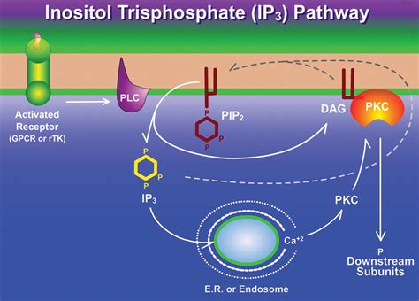 Now, here’s where things get really interesting. IP3’s main job is to trigger the release of calcium ions (Ca2+) from the endoplasmic reticulum (ER), which is like the cell’s internal storage unit for calcium. IP3 does this by binding to IP3 receptors, which are essentially calcium channels located on the ER membrane. When IP3 binds, these channels open, and calcium floods out into the cytoplasm, the main fluid-filled space inside the cell. This sudden increase in calcium concentration acts as another signal, triggering a cascade of downstream events that ultimately lead to a cellular response.