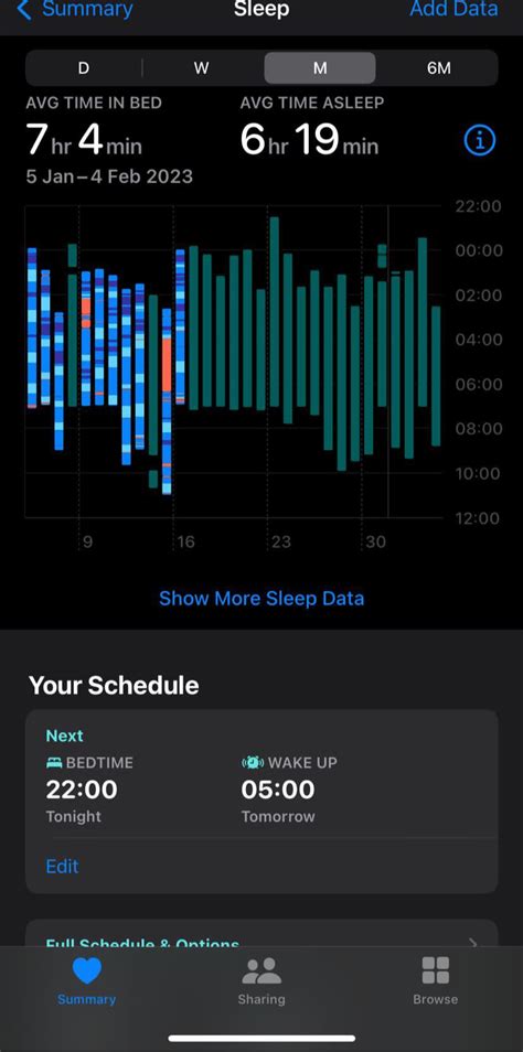 Alright, first things first: setting up your sleep schedule. This is the foundation upon which all the sleep tracking magic is built. It’s super easy, and I’ll walk you through it step-by-step. Go ahead and open your Health app . You should see a summary view with various health metrics. If you don’t see the sleep data immediately, it’s usually under the ‘Browse’ tab at the bottom right. Tap on ‘Sleep’. If it’s your first time, you’ll likely be prompted to set up your sleep schedule. If not, tap ‘Full Schedule & Options’. You’ll then be able to customize your sleep schedule. Here, you’ll define your desired bedtime and wake-up time for each day of the week. This is where you tell the app when you plan to go to sleep and when you want to wake up. This is also where you can set your sleep goals; how many hours of sleep you want to get each night.
