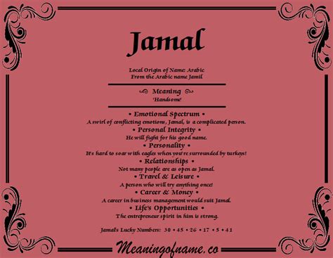 The name’s significance isn’t just limited to its direct translation. It branches out into related concepts such as elegance, refinement, and excellence . When someone is named Jamal, there’s often an implicit expectation, or at least a hope, that they will embody these qualities. Parents choosing this name for their child may aspire for them to grow into individuals who are not only visually pleasing but also possess a beautiful soul and a commendable character. It reflects a desire for the child to be a source of joy and admiration, both for their appearance and their actions.