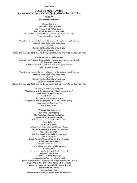 Hey guys! Today, we’re diving deep into the soulful and uplifting world of Justin Bieber’s “Holy,” featuring Chance the Rapper. This song isn’t just a chart-topper; it’s a powerful narrative about faith, love, and redemption. So, grab your headphones, and let’s unpack the layers of meaning behind these heartfelt lyrics. Whether you’re a die-hard Belieber or just someone who appreciates meaningful music, you’re in for a treat!