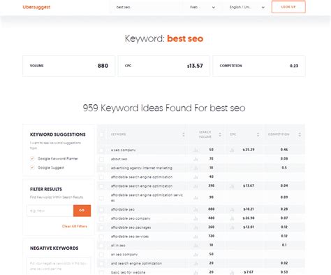 Next up, we have Ubersuggest , brought to you by the one and only Neil Patel. Ubersuggest has become a popular choice, particularly for those new to SEO, because it’s user-friendly and offers a decent set of features at an affordable price point. Let’s see how it stacks up against the competition.