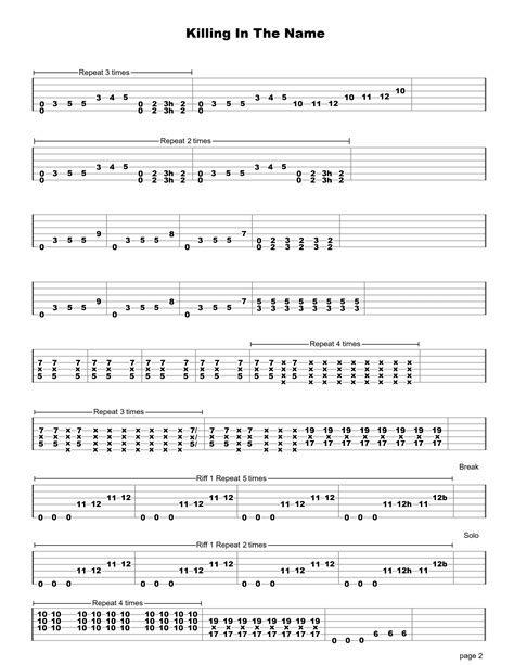 While the main riff is the most iconic part of “Killing in the Name”, the song also features a memorable solo and several other interesting riffs. The solo, though unconventional, is a key element of the song’s overall impact. It’s not a traditional guitar solo with flashy licks and shredding. Instead, it’s a more experimental and atmospheric piece that relies heavily on effects and unconventional techniques. Tom Morello is known for using a variety of effects pedals, including a whammy pedal, delay, and distortion, to create unique and otherworldly sounds. The solo in “Killing in the Name” is a prime example of his innovative use of effects. To learn the solo, start by listening to the original recording carefully. Pay attention to the different sounds and textures that Morello creates. Then, try to identify the effects that he’s using and experiment with your own pedals to recreate those sounds. The tab for the solo is often less precise than the tab for the main riff, as it’s more about capturing the overall feel and atmosphere than playing specific notes. However, there are many online resources that provide detailed transcriptions of the solo. In addition to the solo, “Killing in the Name” also features several other interesting riffs that are worth exploring. These riffs often serve as transitions between the main riff and the verses or choruses. They might be based on variations of the main riff or introduce new melodic or rhythmic ideas. By learning these riffs, you’ll gain a deeper understanding of the song’s structure and how the different parts fit together. So, don’t just focus on the main riff. Take the time to explore the solo and other riffs in “Killing in the Name”. It will enhance your playing and give you a greater appreciation for the song’s musical complexity.