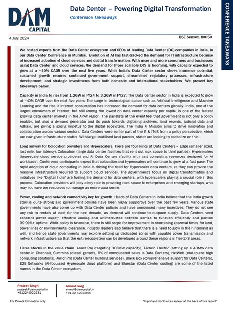 • Skilled Workforce : There is a need to develop a skilled workforce to operate and maintain data centers. The government and industry need to collaborate to provide training and education programs to address this skills gap.