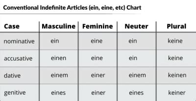 Take a close look, guys! You’ll notice some familiar endings from the definite articles. For example, the masculine accusative becomes einen , which is parallel to den . In the dative, masculine and neuter both become einem , similar to dem , and feminine becomes einer , echoing der (feminine dative definite article). These parallels are your friends! They help you remember the patterns. The genitive also shows consistency with definite articles, with masculine and neuter taking -es endings ( eines ) and feminine taking -er ( einer ). The biggest thing to remember here is that there is no plural form for the indefinite article. If you need to express an indefinite plural, you simply omit the article altogether, or use words like einige (some) or viele (many). For example, you would say “ Ich sehe Hunde ” (I see dogs) rather than trying to invent a plural indefinite article. This can be a bit of a mental shift for English speakers, who are used to saying “some dogs.” So, understanding this table is crucial for using indefinite articles correctly. It tells you that if you want to say “to a man” (masculine, dative), you use einem Mann . If you want to say “a woman’s book” (feminine, genitive), it would be das Buch einer Frau . These forms allow you to introduce new nouns into a conversation or refer to them generally, all while maintaining proper grammatical structure in German. It’s a testament to the language’s precision, where even these small articles carry significant grammatical weight. Practice these tables regularly, guys, and try to construct your own sentences using different genders and cases. The more you actively use them, the more ingrained these patterns will become, making your German sound much more authentic.