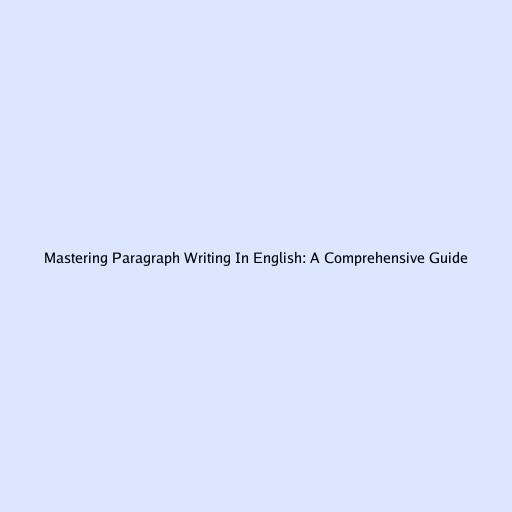 Mastering Paragraph Writing in English: A Comprehensive Guide