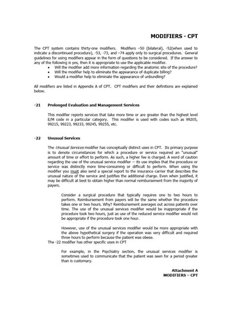 Now, let’s really sink our teeth into the nuances of using specific modifiers . This is where the rubber meets the road, folks! While understanding the categories is essential, applying them correctly requires a deeper understanding of individual modifier definitions and their specific applications. Take, for example, the ubiquitous modifier 25 . This modifier is used to indicate a significant, separately identifiable Evaluation and Management (E/M) service by the same physician on the same day as another procedure or service. It’s incredibly common, but also notoriously misused. You can’t just tack on a 25 to an E/M service if it was just part of the pre-op or post-op care of the procedure. The key is demonstrating that a distinct E/M service was provided, requiring a separate history, exam, and medical decision-making. Another critical one is modifier 59, used for Distinct Procedural Service . This modifier is used when a provider performs a distinctly separate procedure in a different session, different site, different incision, or different injury. It’s often used to bypass edits that might otherwise flag a service as bundled. However, modifier 59 is highly scrutinized , and its misuse can lead to serious consequences. Payers are increasingly encouraging the use of more specific, XE, XP, XU, or XS modifiers (colloqually known as the ‘X{mod}’ modifiers) instead of 59 when applicable, as they provide even greater clarity on the nature of the distinct service. _Think about modifier 76 (Repeat Procedure or Service by Same Physician) and modifier 77 (Repeat Procedure or Service by Another Physician) . These are used when a procedure needs to be repeated, but it’s crucial to distinguish who performed the repeat. The details matter immensely . Even seemingly minor differences in how a service was performed or documented can dictate which modifier is appropriate. Always consult the CPT codebook and payer guidelines religiously. There’s no substitute for accurate documentation and a thorough understanding of the specific rules surrounding each modifier. Investing time in learning these specific nuances will pay dividends in reduced claim rejections and more accurate reimbursements. It’s about being meticulous and ensuring every piece of information accurately reflects the care provided.