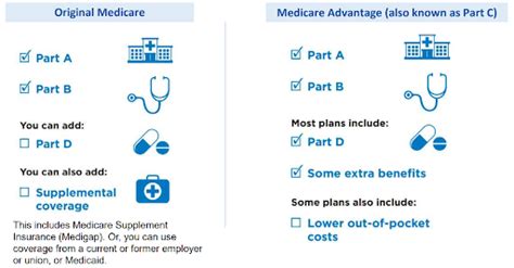 • Prescription Drugs: Original Medicare requires a separate Part D plan for prescription drug coverage, while many Medicare Advantage plans include prescription drug coverage.