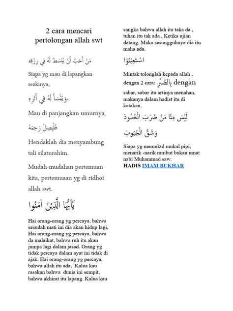 Life is full of ups and downs, and often, seeking Allah’s help means cultivating immense patience and perseverance through trials. When you are mengharapkan pertolongan Allah , it’s crucial to understand that His timing and His ways are perfect, even if they are not immediately apparent to us. The Quran beautifully illustrates this through the story of Prophet Musa (Moses) and his mother, who was instructed to cast him into the river, only for him to be returned to her in the palace. This narrative highlights how sometimes, the path to relief involves seemingly difficult or counter-intuitive steps, but they are all part of a divine plan that ultimately leads to a positive outcome. Patience in the face of adversity is not passive resignation; it’s an active, faith-filled endurance. It’s about maintaining hope and continuing to do good deeds, even when things seem darkest. It’s about trusting that Allah is with those who are patient, and that He will reward their steadfastness. The challenges we face are often opportunities for spiritual growth, purifying our souls and drawing us closer to our Creator. By embracing patience, we learn valuable lessons about resilience, faith, and the transient nature of hardship. When we are patient, we allow Allah’s wisdom to unfold in our lives, trusting that He is working things out for our ultimate good. This unwavering faith during difficult times is a powerful form of worship in itself. It demonstrates our deep conviction in Allah’s power, mercy, and justice. Remember, every trial is a test, and passing these tests with patience and faith can elevate your spiritual standing and bring you closer to His divine favor. So, when life gets tough, take a deep breath, turn to Allah in dua , put in your best effort, and then wait with patience, knowing that His help is surely on its way. It is this combination of action, supplication, and unwavering patience that truly embodies the spirit of mengharapkan pertolongan Allah and leads to the most profound and lasting forms of divine assistance. It’s a journey that refines us, strengthens us, and ultimately brings us closer to the peace and contentment that only He can provide.