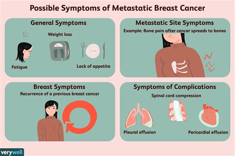 Guys, paying attention to your body is super important , especially when we’re talking about metastatic breast carcinoma symptoms . It’s not just about the obvious signs; sometimes, it’s the subtle changes that can be the first clues. Persistent fatigue is a big one. We’re not talking about just feeling tired after a long day; this is a profound, overwhelming exhaustion that doesn’t get better with rest. If you find yourself constantly drained and struggling with daily activities, it’s worth investigating. Another sign to keep an eye on is unexplained weight loss . If you haven’t intentionally changed your diet or exercise routine and you’re dropping pounds, that’s a red flag. Similarly, loss of appetite can accompany this; you might just not feel like eating, or food might not taste appealing anymore. New or worsening pain is another critical symptom. As we discussed, this could be bone pain, but it could also be pain in other areas that you can’t quite explain. Don’t brush off persistent aches and pains. Changes in breathing are also significant. If you’re experiencing shortness of breath, especially during activities that never used to tire you out, or a cough that just won’t quit, it’s time to see a doctor. Digestive issues like persistent nausea, vomiting, or changes in bowel habits can also be signs, particularly if they’re related to potential liver involvement. And let’s not forget about skin changes. While less common as a primary sign of metastasis, any unusual lumps or changes in the skin , especially if they appear suddenly or are accompanied by other symptoms, should be evaluated. It’s also essential to be aware of the general symptoms that can accompany any advanced cancer, such as a fever or night sweats . These systemic symptoms can indicate that the cancer is affecting your overall health. Remember, these symptoms aren’t exclusive to metastatic breast cancer; they can be caused by many other conditions. However, if you experience any of these, especially if you have a history of breast cancer or are at higher risk, it’s crucial to consult your healthcare provider. They can perform the necessary tests to determine the cause and provide appropriate care. Don’t wait; your health is precious.