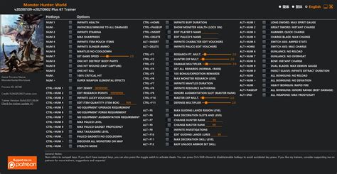 So, what exactly is a trainer? Think of it as your personal sidekick that gives you super powers within the game. A trainer is essentially a piece of software that runs alongside the game, allowing you to tweak certain parameters. These parameters can range from giving yourself unlimited health to one-hit kills, or even infinite resources. Back in 2018, when Monster Hunter World was fresh, trainers were all the rage for players looking to either speed up their progress, experiment with different builds, or just have a bit of fun without the grind. For many, it was about maximizing enjoyment and minimizing the tedious aspects of resource gathering or struggling with particularly tough monsters. The initial wave of Monster Hunter World trainers offered a variety of functionalities, catering to different player preferences. Some trainers focused on providing a more god-like experience, while others aimed to offer subtle advantages that enhanced gameplay without completely removing the challenge. Common features included unlimited health, stamina, and item usage, as well as the ability to modify damage output and defense stats. These features allowed players to overcome difficult encounters, explore the game world without fear of death, and experiment with different weapons and armor sets without the time investment required in the base game.