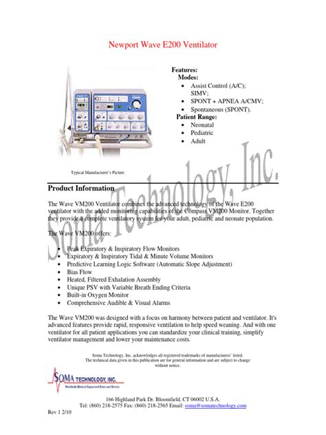 One of the key features of the Newport e200 is its advanced monitoring capabilities. It provides real-time data on various respiratory parameters, such as tidal volume, respiratory rate, and oxygen saturation. This information is crucial for clinicians to assess the patient’s response to ventilation and make necessary adjustments. The ventilator also includes alarms that alert medical staff to any potential issues, such as a sudden drop in oxygen levels or a disconnection from the patient. These alarms help ensure that problems are addressed promptly, minimizing the risk of complications. Moreover, the Newport e200 is designed with patient safety in mind. It incorporates various safety features, such as pressure limits and backup ventilation modes, to protect patients from potential harm. These features provide an extra layer of security, ensuring that patients receive safe and effective ventilation.