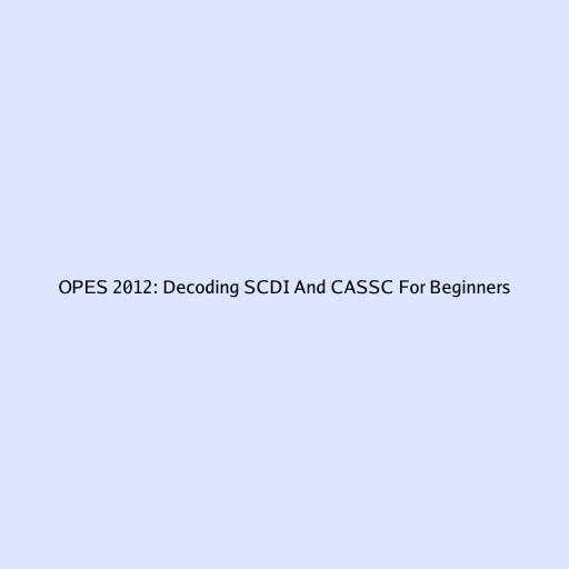 OPES 2012: Decoding SCDI and CASSC for Beginners